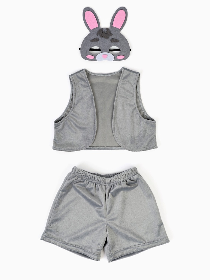 Карнавальный костюм «Зайчик серый»: ободок, жилет, хвост, рост 98–128 см