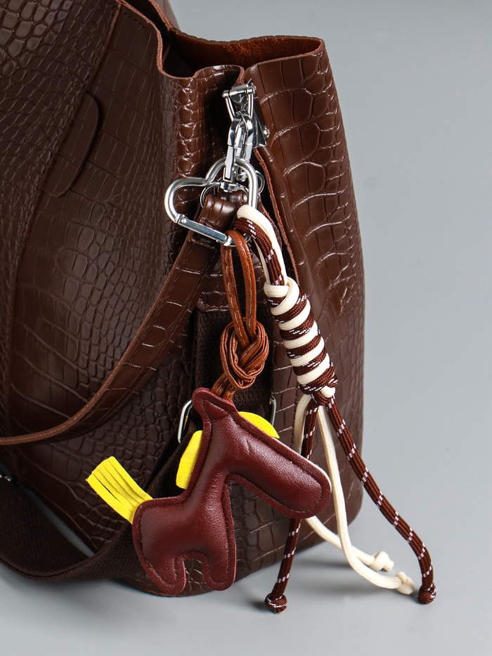 Брелок для ключей на карабине кожзам, текстиль «Лошадка с сердечком», с узлом, на сумку, рюкзак, 26×10×1.5 см