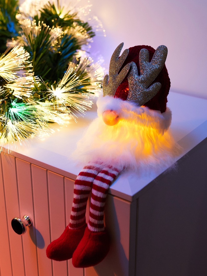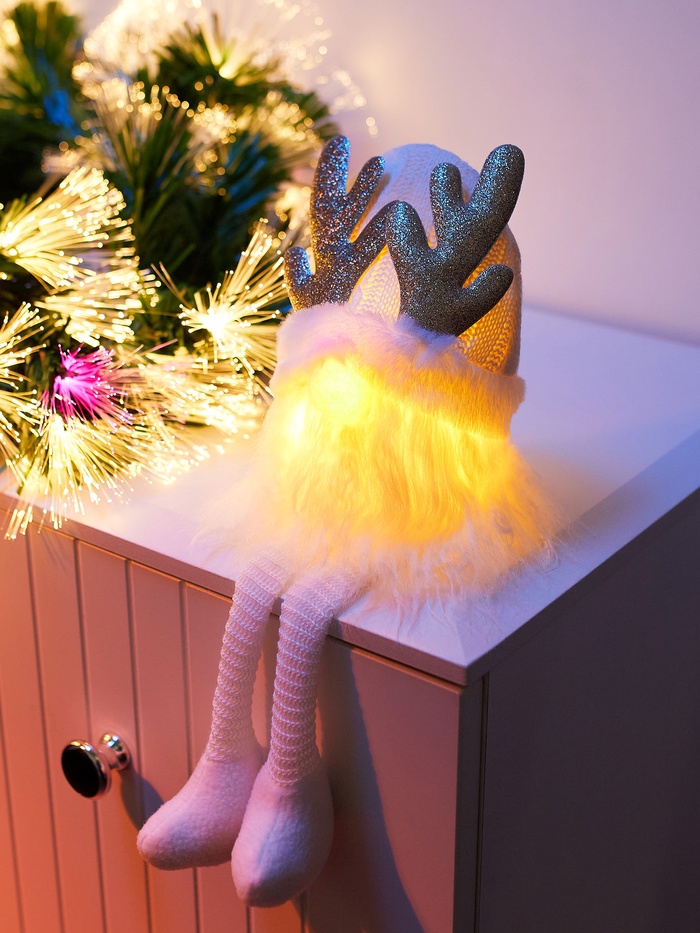 Фигура текстиль «Гном белая шапочка» 33 см, 1 LED, от батареек AG13×3, свечение тёплое белое
