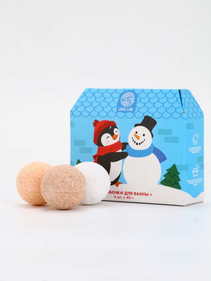 Бомбочки для ванны в домике «Снеговик», набор 6 шт х 40 г, URAL LAB
