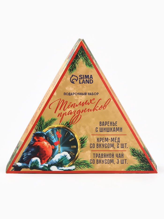 Подарочный новогодний набор «Советский»: чай травяной 25 г х 3 шт., варенье с шишками 100 мл., крем-мёд 120 г х 2 шт.