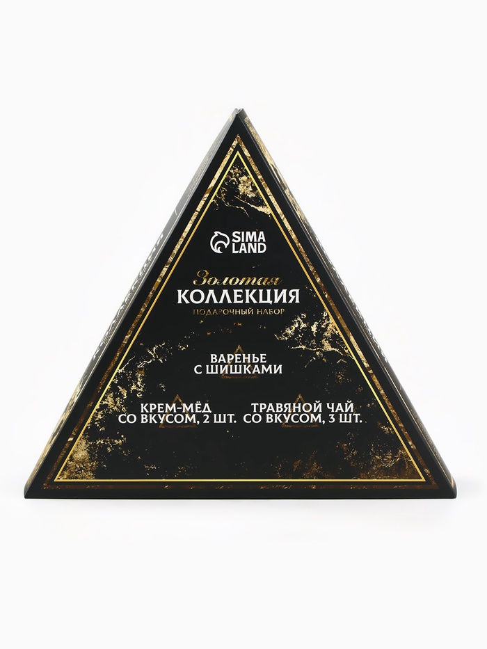 Подарочный новогодний набор «Золотая коллекция»: чай травяной 25 г х 3 шт., варенье с шишками 100 мл., крем-мёд 120 г х 2 шт.