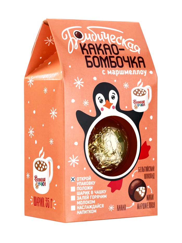 Шоколадная бомбочка с маршмеллоу «Бомбическое какао: пингвин», 35 г