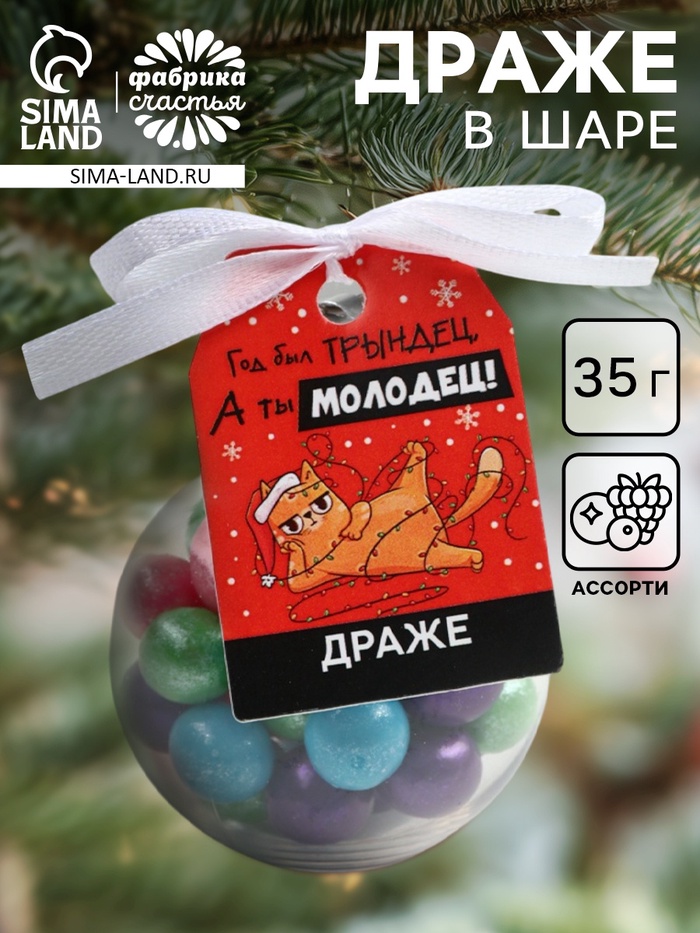 Драже новогоднее в круглой банке с шильдом «Год был трындец», 35 г