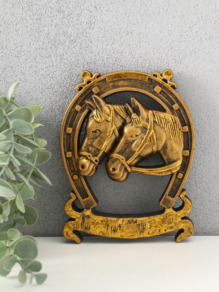 Панно "Подккова с лошадками" 12х15 см, золото с позолотой