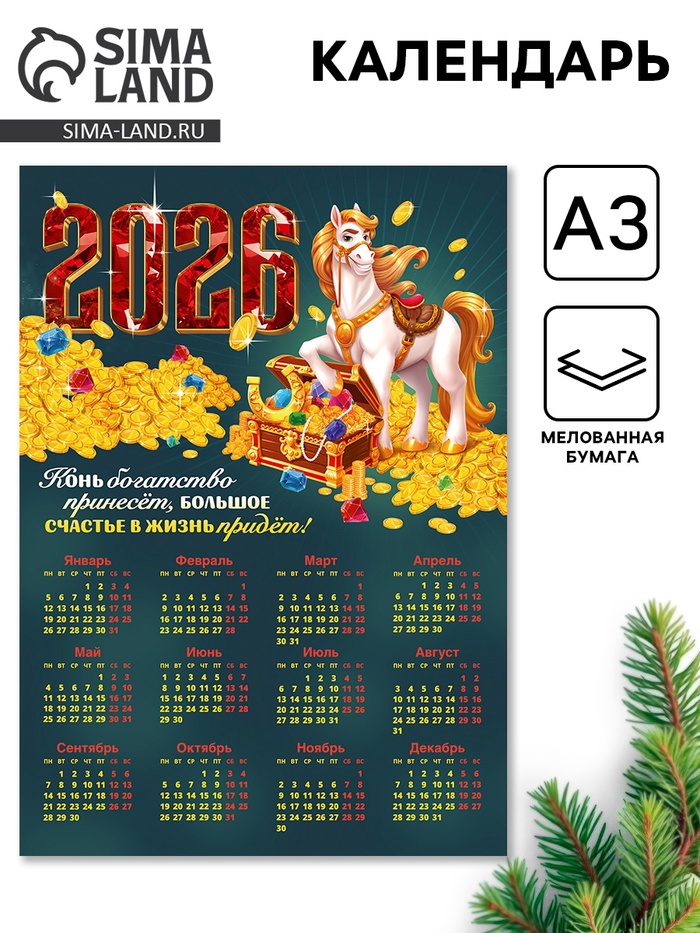 Календарь 2026 «Конь богатство принесёт», А3