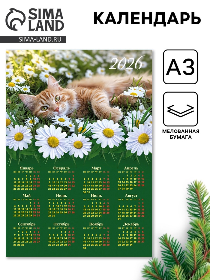 Календарь 2026 «Кот в цветах», А3