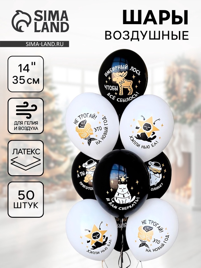 Воздушные шары латексные 14" «С НГ, прикольные», 50 шт.