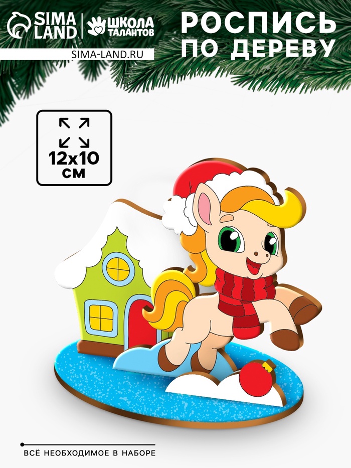 Заготовки для творчества.Роспись по дереву "Лошадка и Дед Мороз" З5542