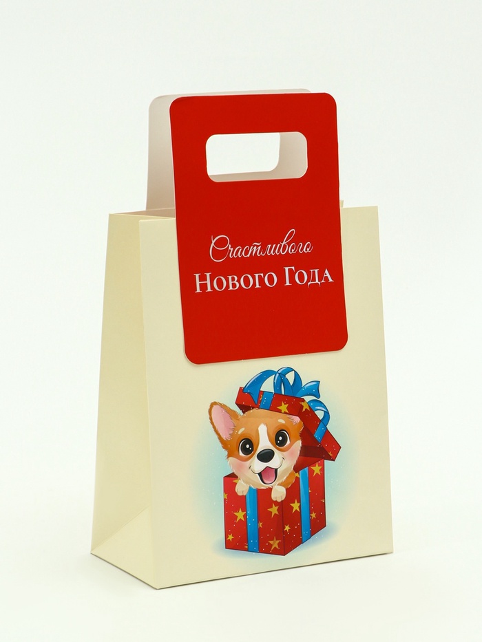 Пакет подарочный с вырубной ручкой «Корги» 18×23×9 см, зеленый