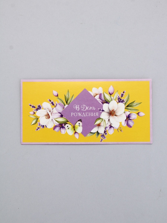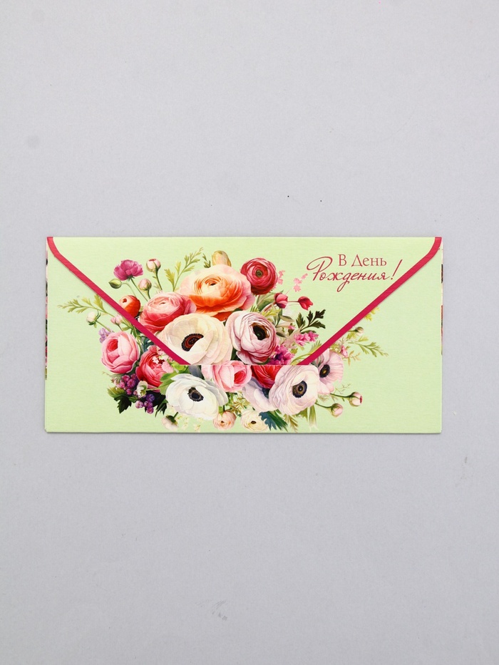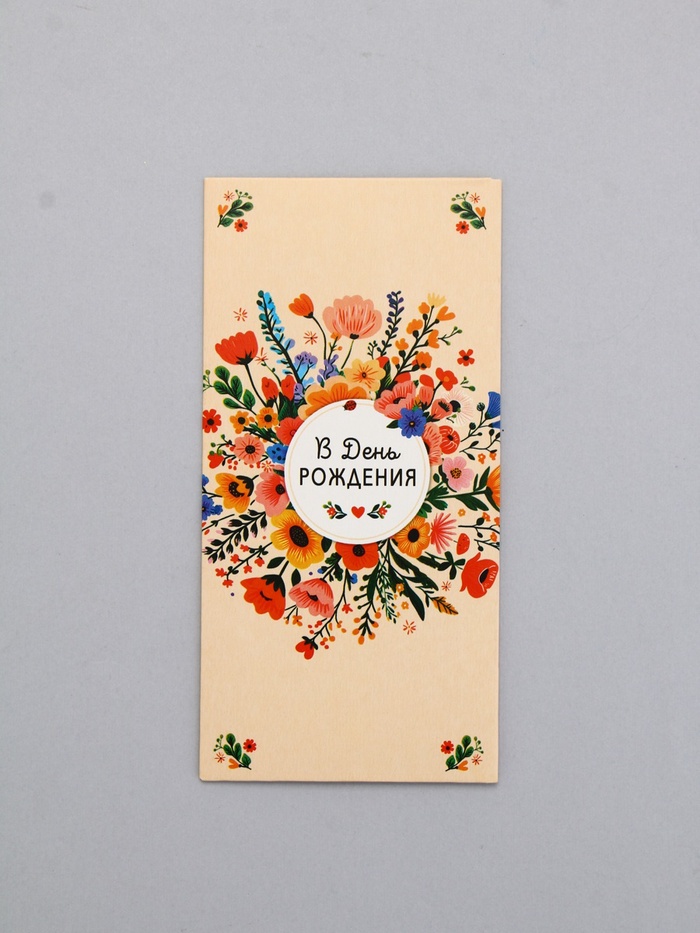 Конверт для денег «В День Рождения!», яркие цветы на светлом, 16,5 х 8 см
