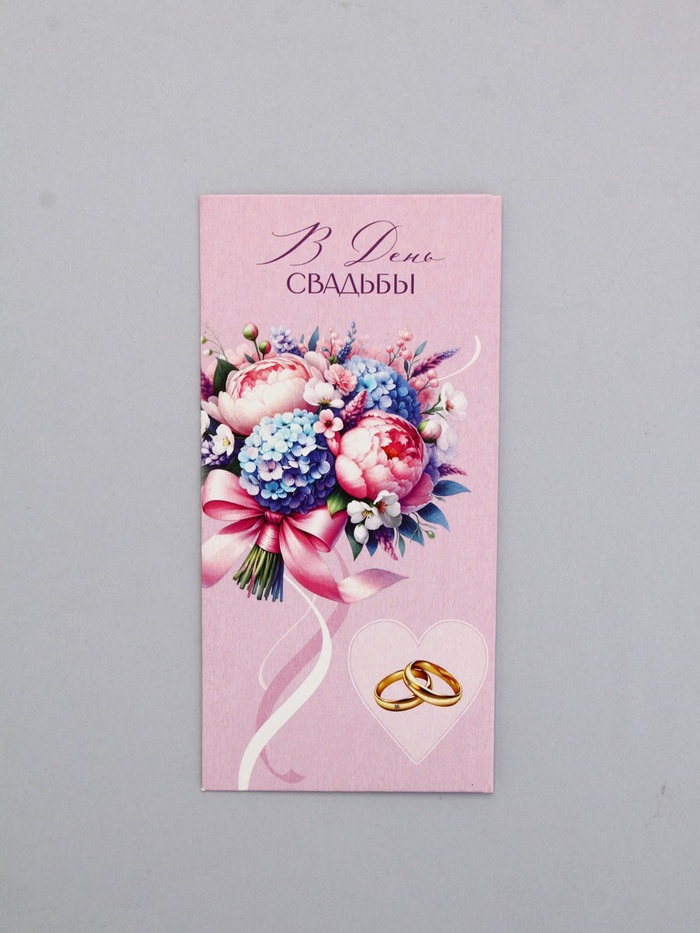 Конверт для денег «В День Свадьбы», сиреневый, 16,5 х 8 см
