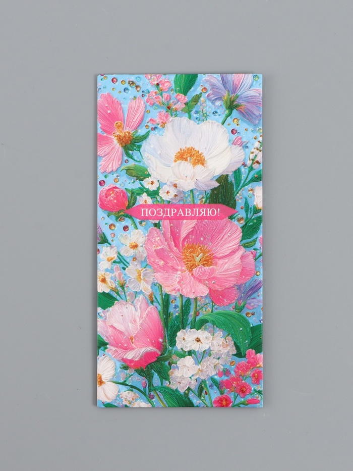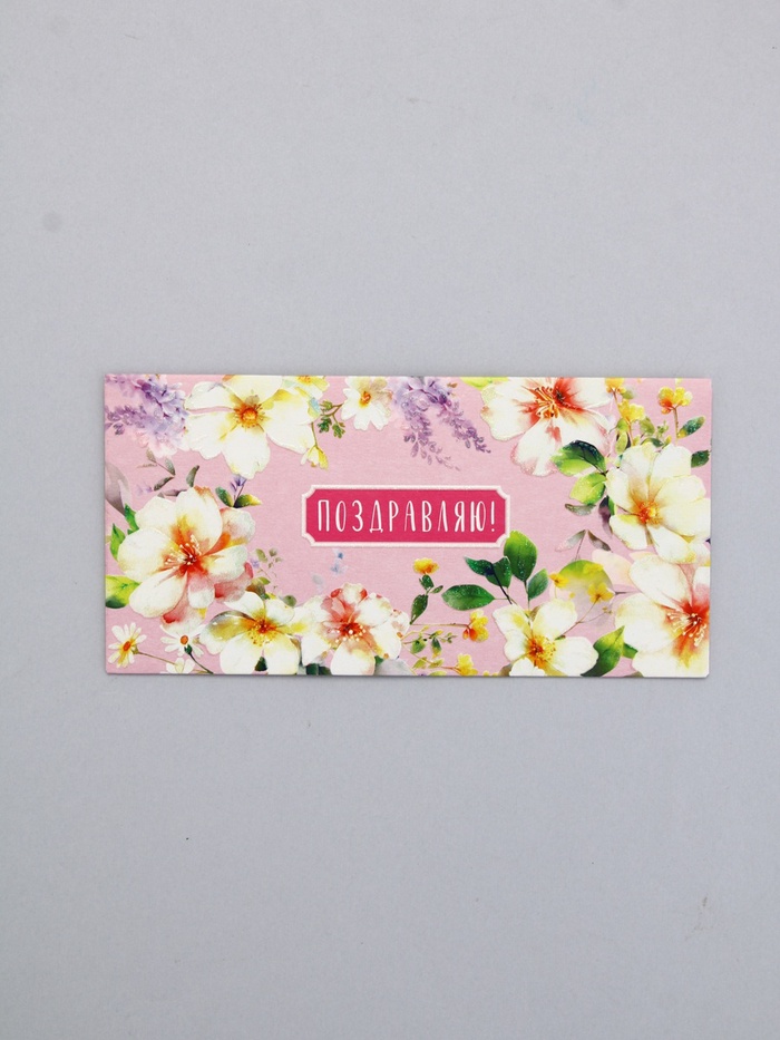 Конверт для денег «Поздравляю!», нежные цветы, 16,5 х 8 см