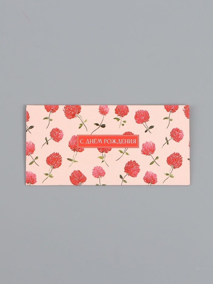 Конверт для денег «В День Рождения!», красные цветы, 16,5 х 8 см