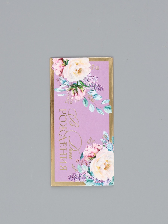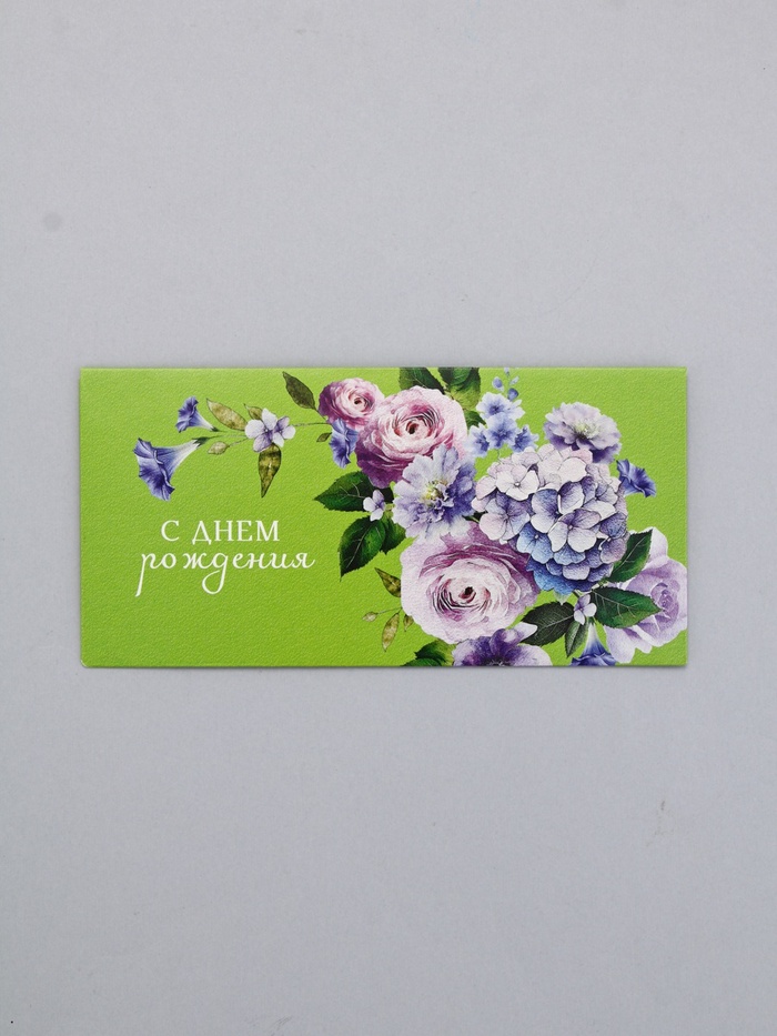 Конверт для денег «В день рождения», сирень, 16,5 х 8 см