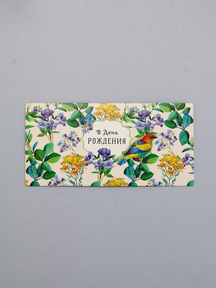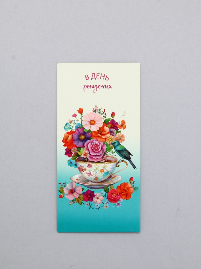 Конверт для денег «В день рождения», чашка и птица, 16,5 х 8 см