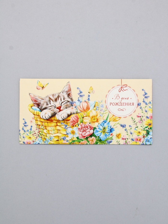 Конверт для денег «В День Рождения», котик спит, 16,5 х 8 см