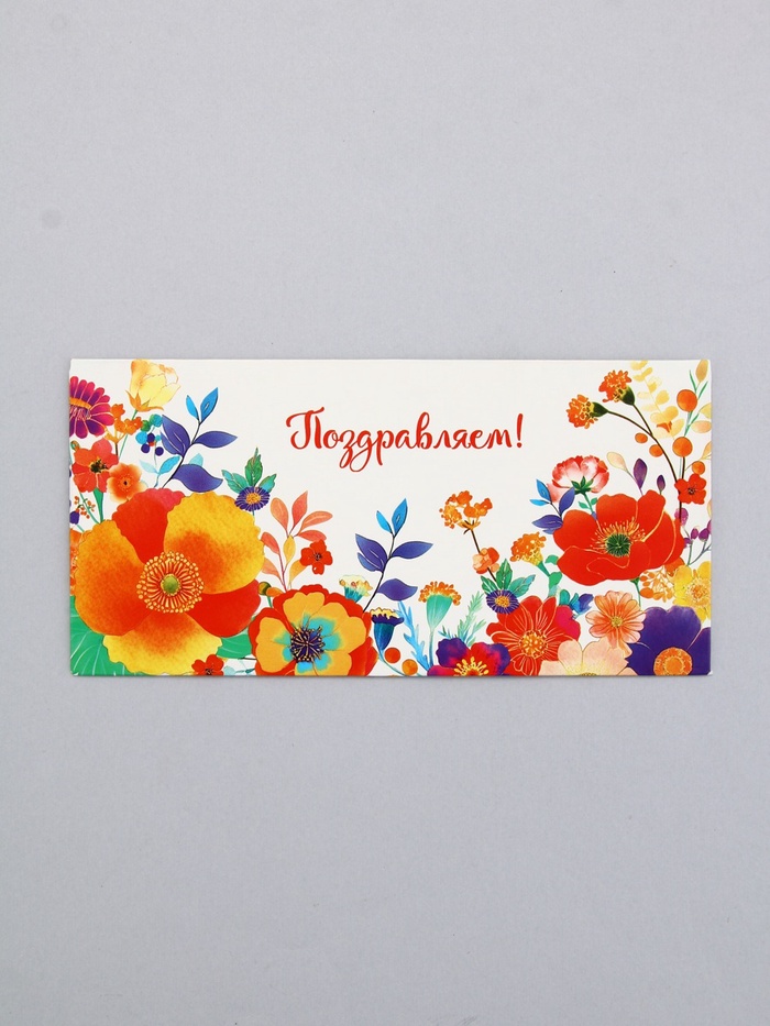 Конверт для денег «Поздравляем!», яркие цветы, 16,5 х 8 см