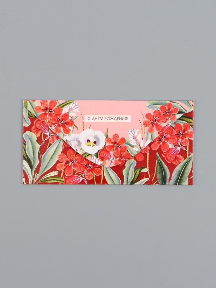 Конверт для денег «С днём рождения», яркие цветы, 16,5 х 8 см