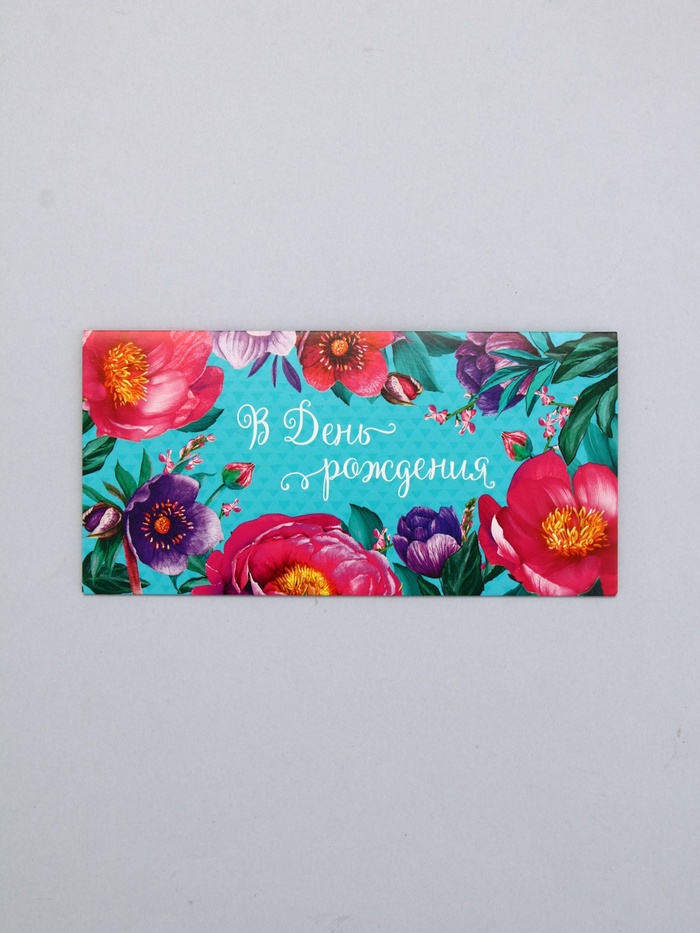 Конверт для денег «С днём рождения», цветы на бирюзовом, 16,5 х 8 см