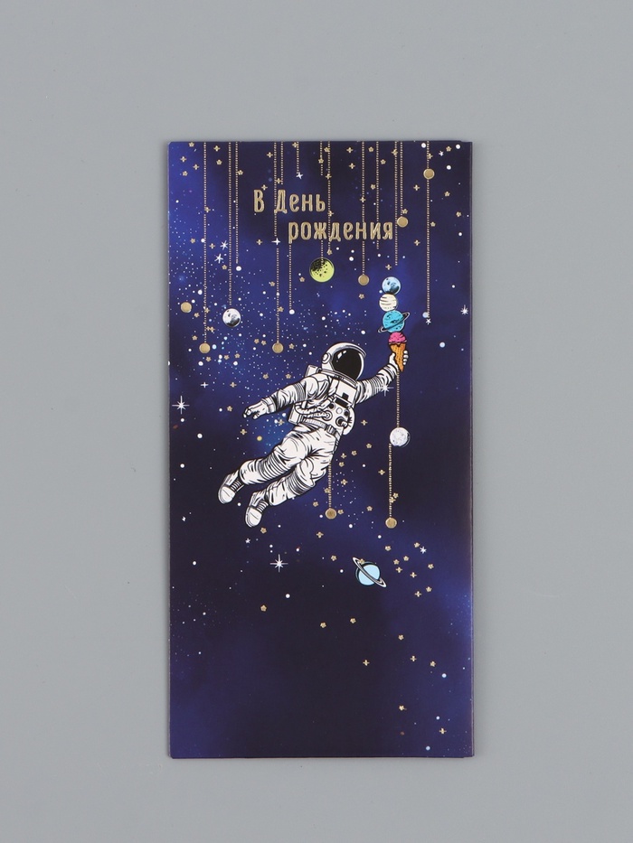 Конверт для денег «С днём рождения», космонавт, 16,5 х 8 см