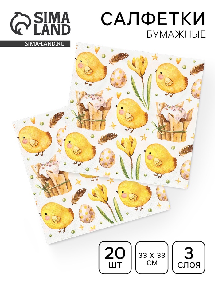 Салфетки бумажные пасхальные «Цыплята», 3 слоя, 33х33, 20 шт