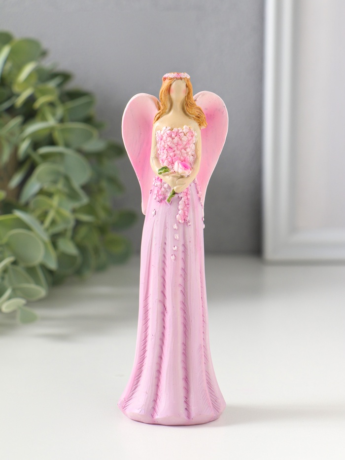 Сувенир полистоун "Девушка-ангел в розовом платье усыпанном цветами" 4х3,5х13 см
