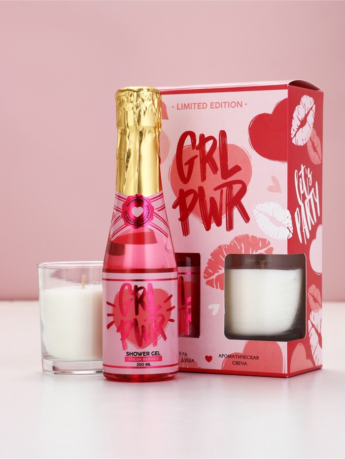 Подарочный набор: гель для душа шампанское 250 мл и свеча, аромат ягод, Чистое Счастье