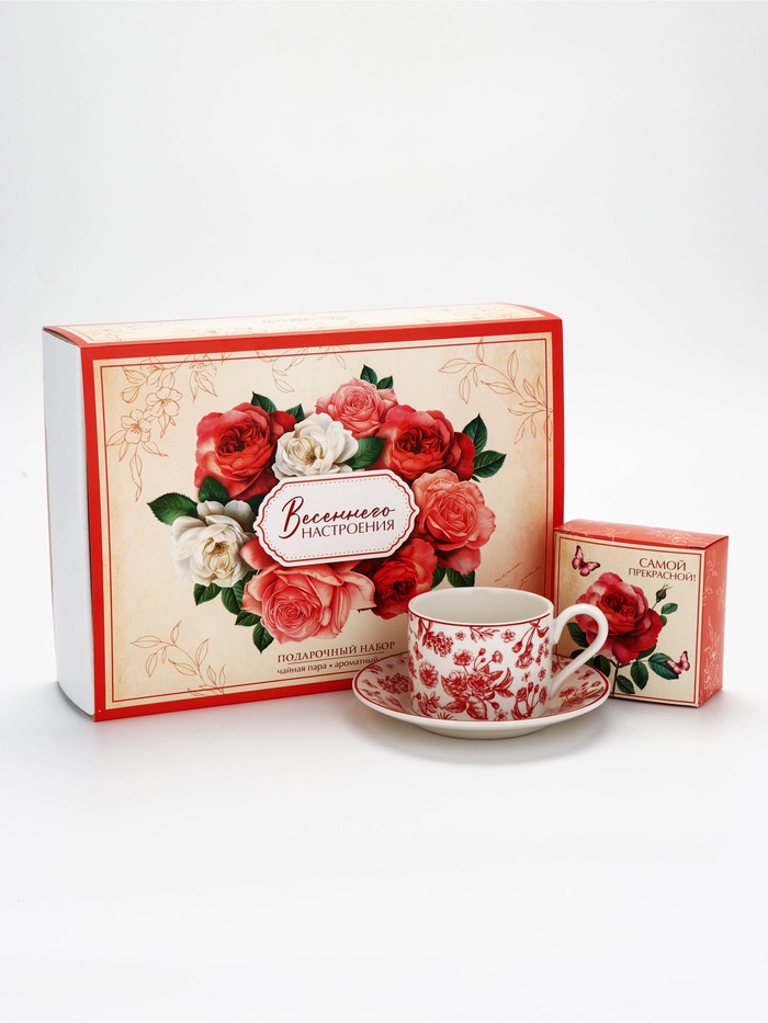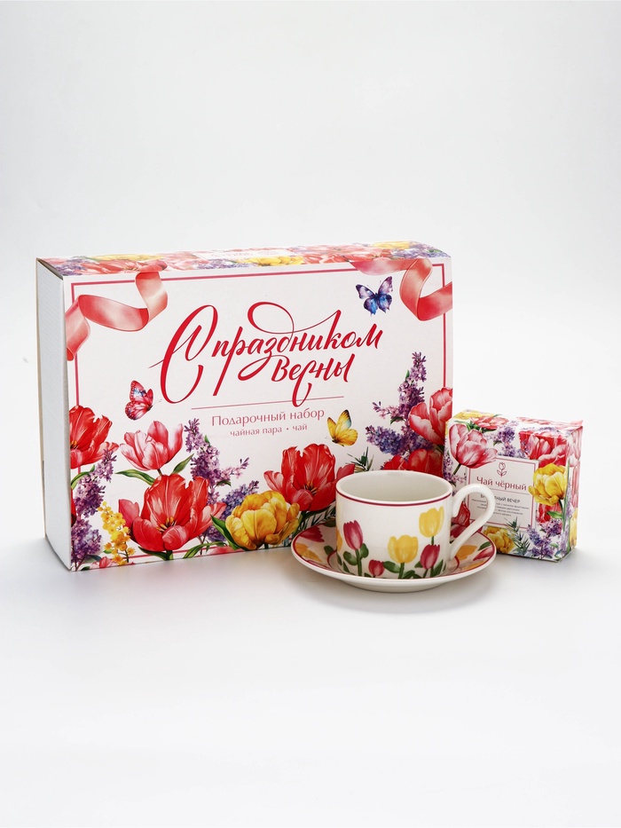 Подарочный набор с чайной парой и чаем "С 8 марта"