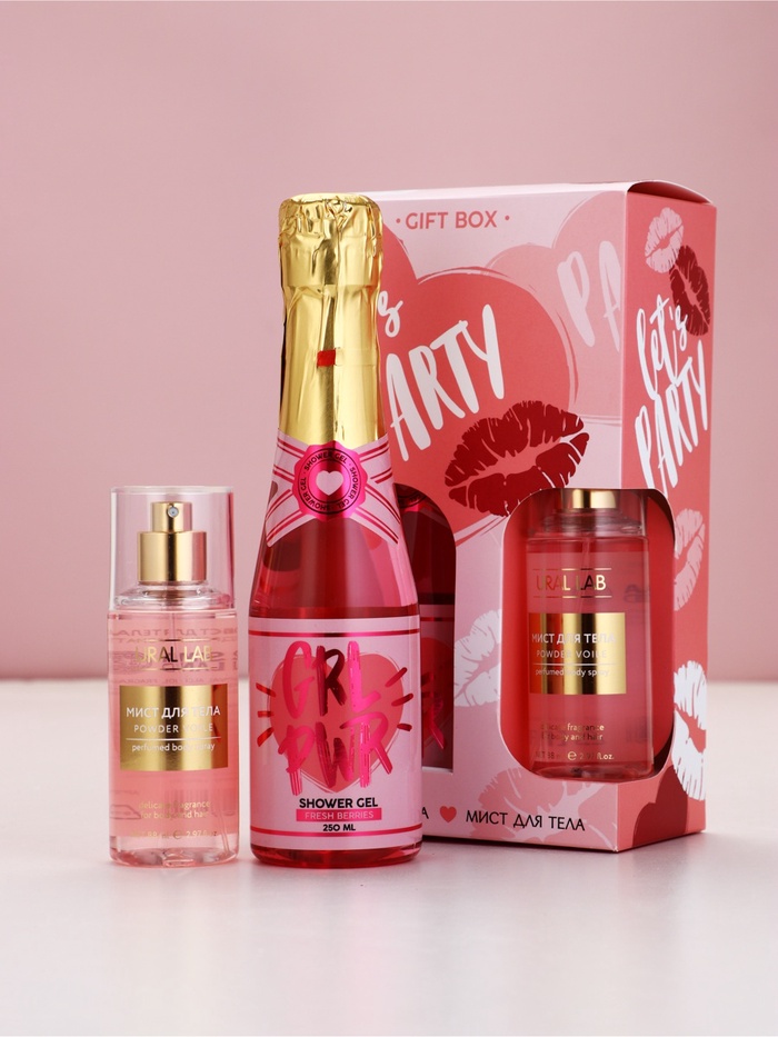 Подарочный набор: гель для душа шампанское и мист для тела,Чистое Счастье
