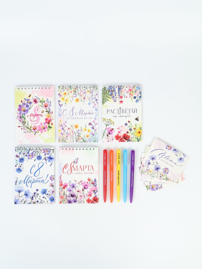 Набор 5 ручек + 5 открыток + 5 блокнотов "С 8 марта"