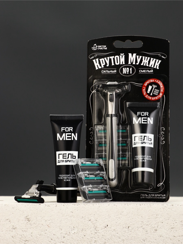 Подарочный набор «Крутой мужик», бритва, 3 станка, гель для бритья, Чистое счастье