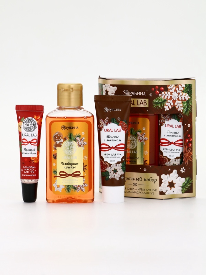 URAL LAB Арома Саунд Набор гель для душа, крем для рук и бальзам для губ, печенье