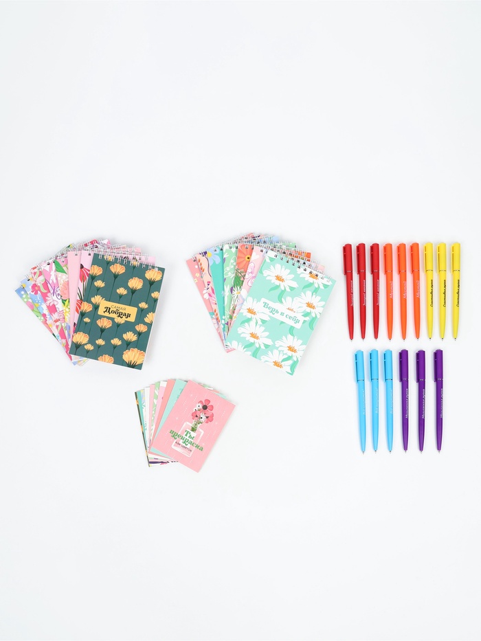 Набор 15 ручек + 15 открыток + 15 блокнотов "Самой прекрасной"