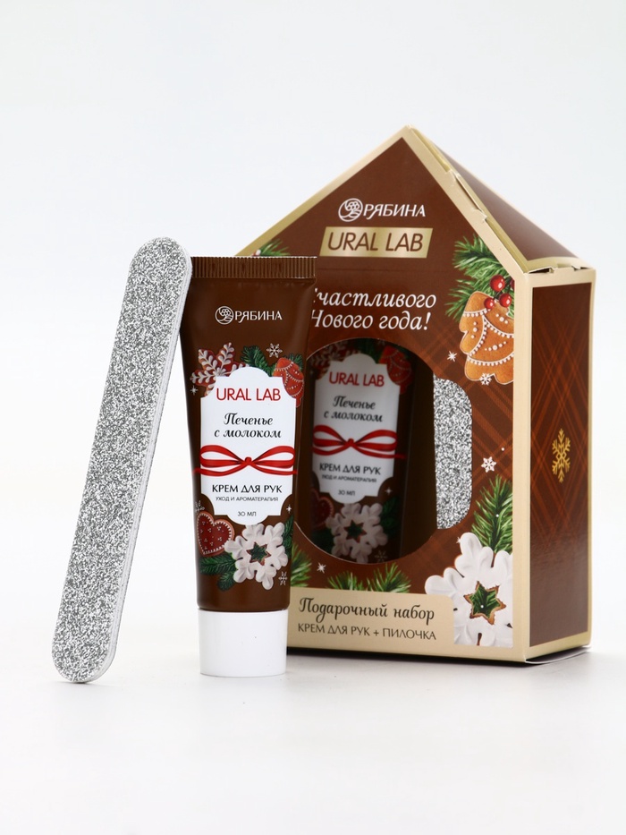 Новогодний подарочный набор косметики: крем для рук и пилка для ногтей, аромат печенье, URAL LAB