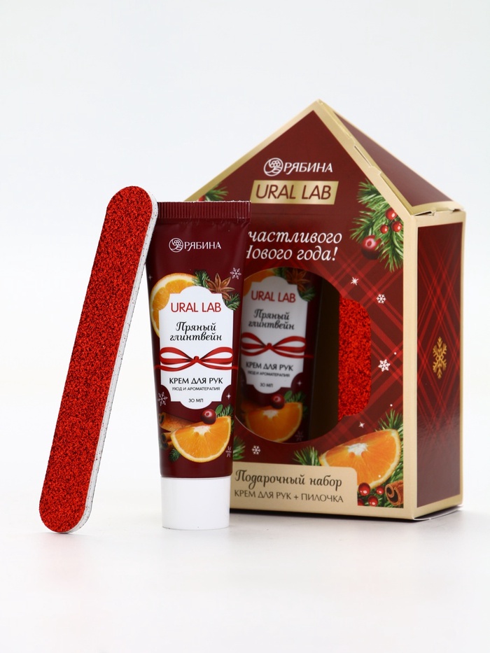 Новогодний подарочный набор косметики: крем для рук и пилка для ногтей, аромат глинтвейн, URAL LAB