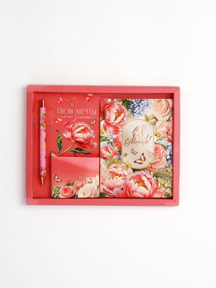 Подарочный набор: ежедневник А6, блок с липким слоем, ручка "Цвети от счастья"