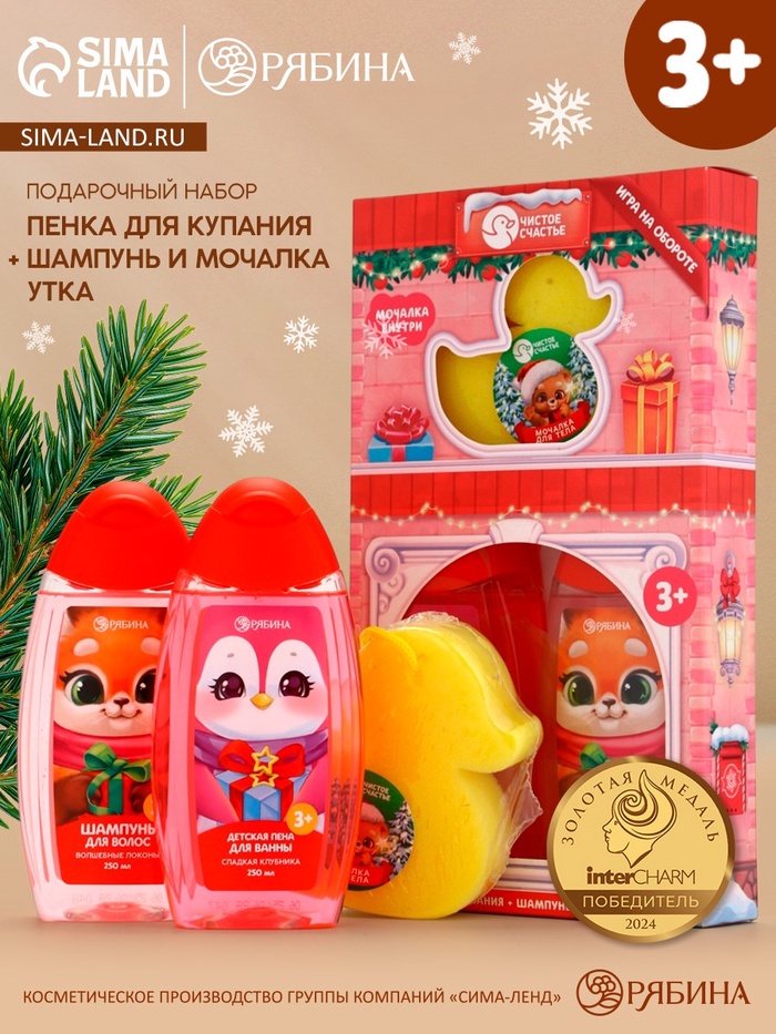 Подарочный набор для девочки «Для тебя»: пена для купания, шампунь для волос и мочалка утка, Чистое счастье