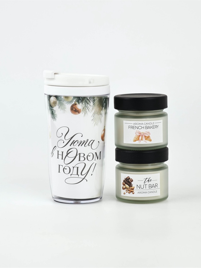 Подарочный набор "Согревайся",термостакан 250 мл и свечи