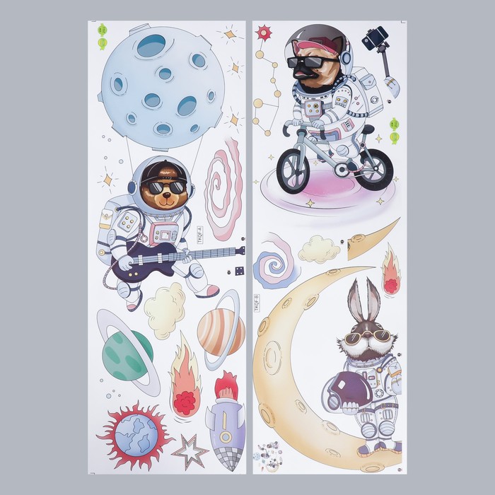 Наклейка пластик интерьерная цветная "Звери в скафандрах" набор 2 листа 30х85 см