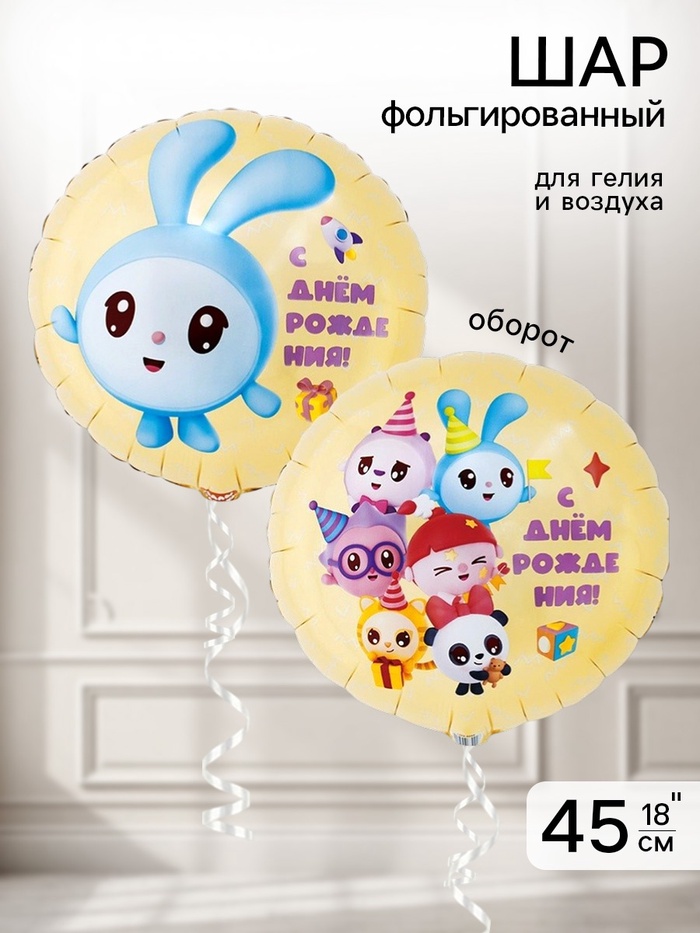 Воздушный шар фольгированный 18" «С днем рождения», Малышарики