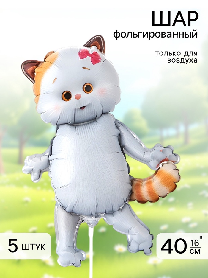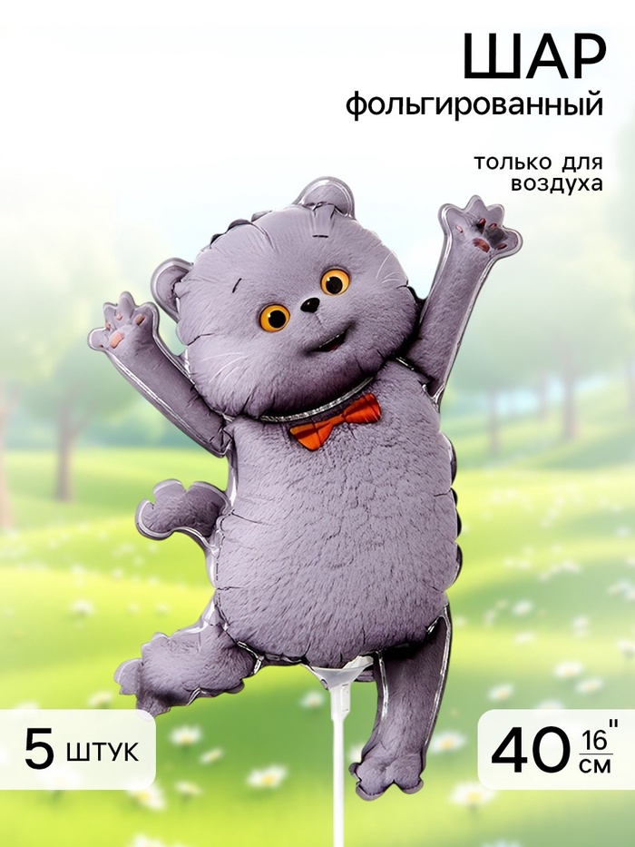 Воздушные шары фольгированные 16" «Кот Басик», набор 5 штук