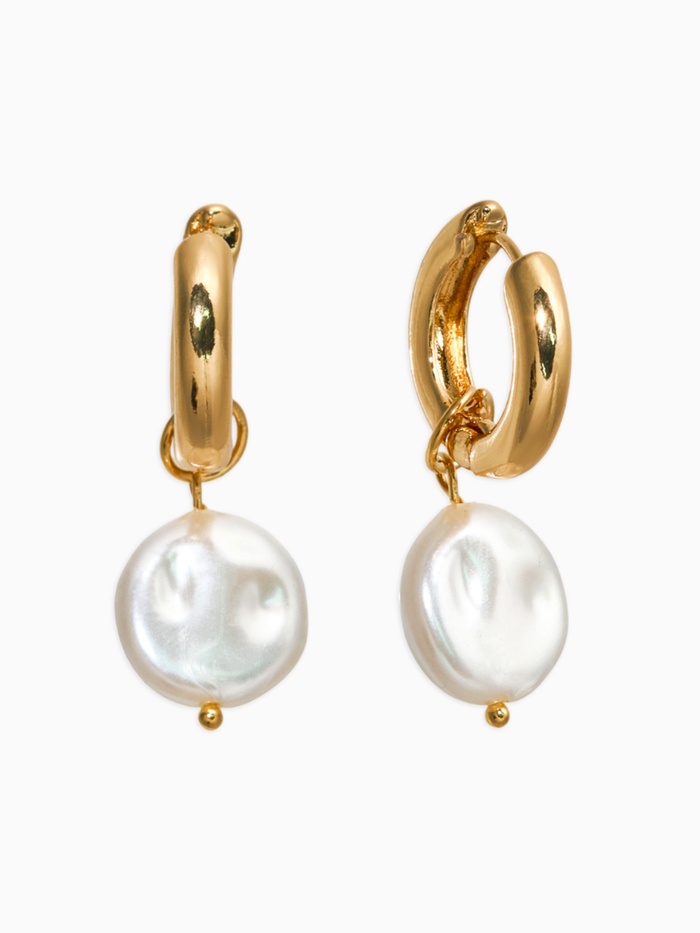 Серьги кольца с жемчугом QF «Нежность жемчуга», d=3.5 см, белые в золоте
