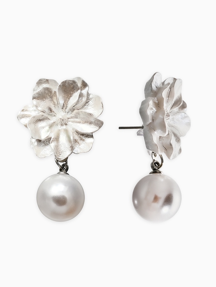 Серьги "Цветок с жемчугом", цвет белый в серебре