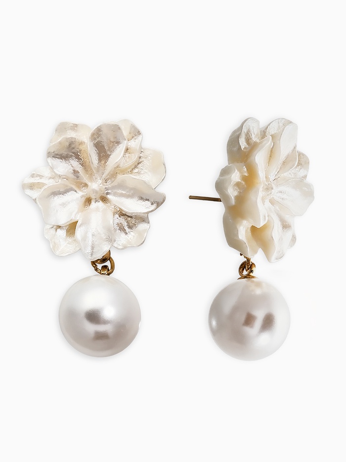 Серьги "Цветок с жемчугом", цвет молочный в золоте