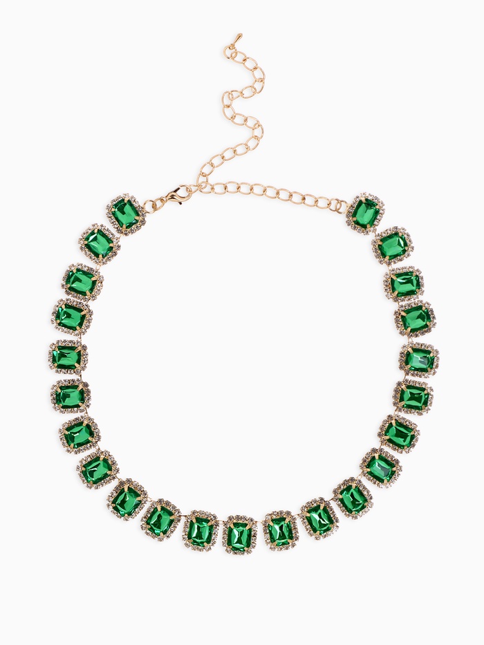 Колье «Драгоценность» квадраты в стразах, цвет бело-зелёный в золоте, 32 см