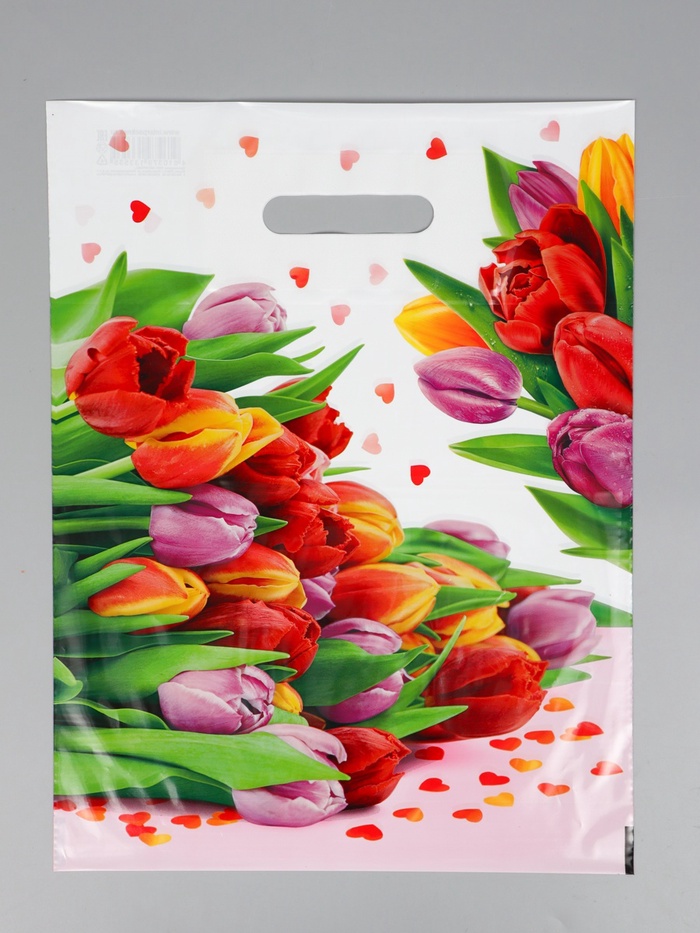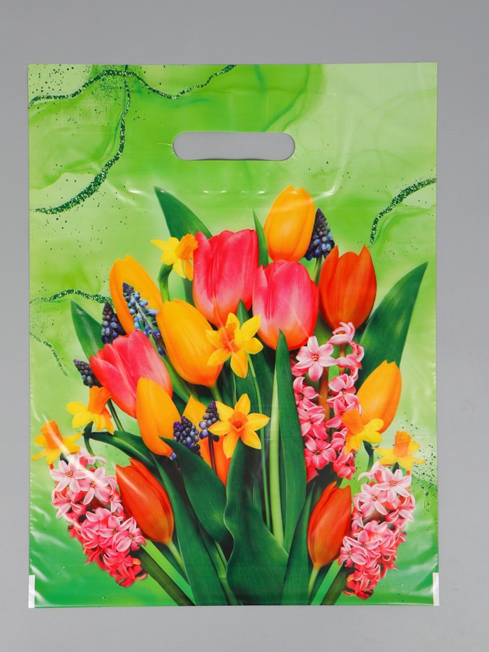 Пакет "Нежный букет" полиэтиленовый с вырубной ручкой, 30х40 см, 30 мкм