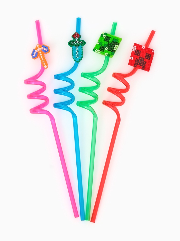 Трубочки для коктейля "Пиксели" набор 4 шт