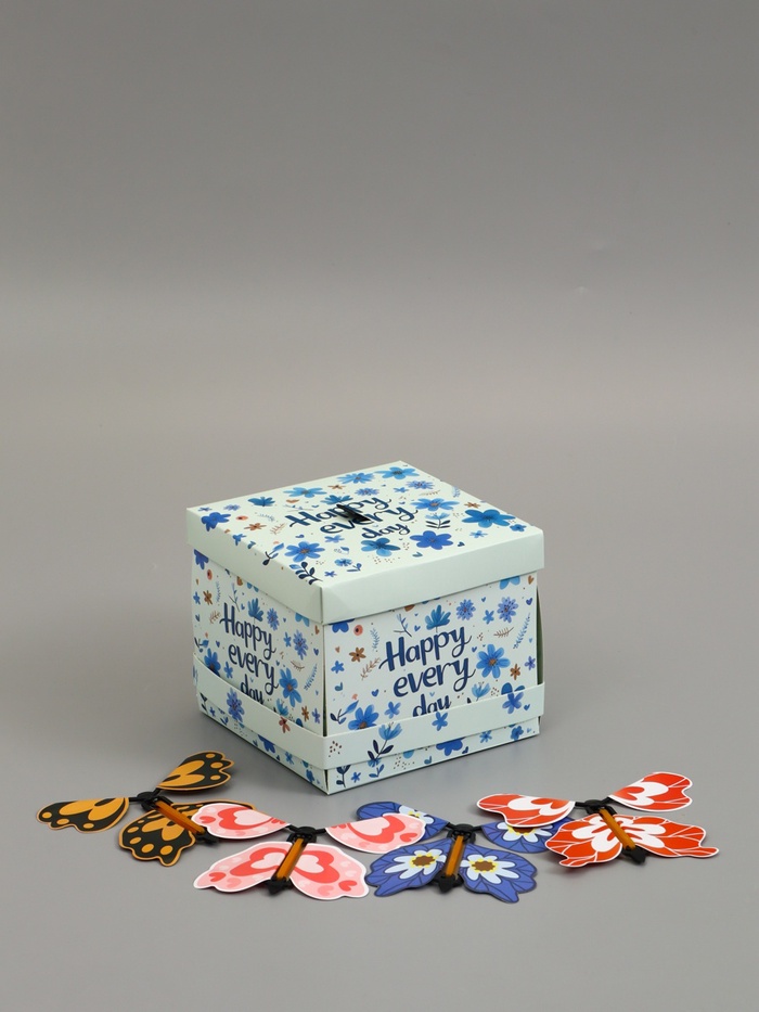 Коробка подарочная "Бабочки, Счастья" 14,5 х 14,5 х 12,7 см