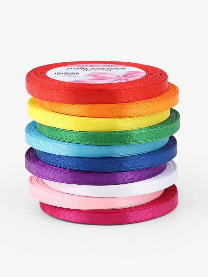 Набор лент атласных (10шт) 6мм*25±1ярд(23м±1м) №01/04/15/19/20/25/26/27/34/40 радуга АУ